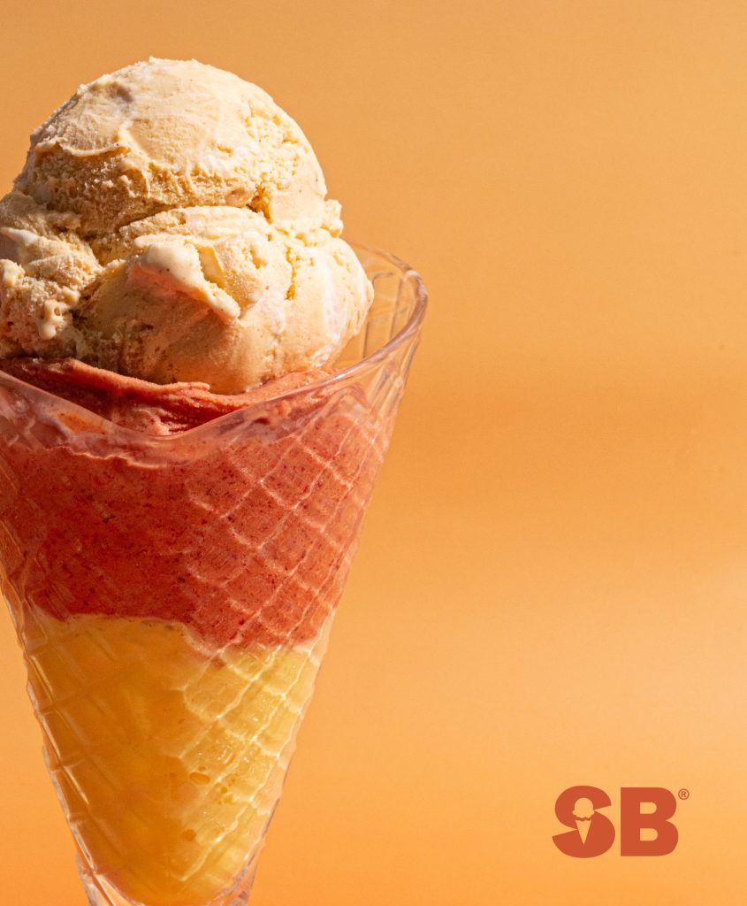 Yay or nay on candy corn? Whether you’re a die-hard fan or not, a sundae inspired by this tri-colored classic is the perfect way to celebrate the season. Start with SB Mamey Magic, add a scoop of creamy, bold SB Banana, and finish with SB Pumpkin—it’s Halloween gone tropical.